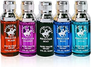 بيفرلي هيلز بولو كلوب مجموعة هدايا صغيرة حصرية للرجال من 5 قطع، او دي تواليت 5 زجاجات صغيرة سعة 0.5 اونصة قد تختلف