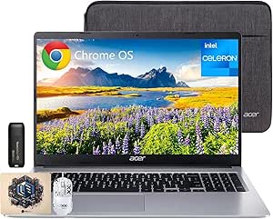 ايسر لابتوب كروم بوك 315 للطلاب والاعمال، شاشة 15.6 انش HD، انتل سيليرون N4020 (حتى 2.8GHz)، ذاكرة RAM 4GB، تخزين 320GB (64GB eMMC + ذاكرة فلاش USB 256GB)، حتى 12.5 ساعة، نظام تشغيل كروم، ماوس حاصل