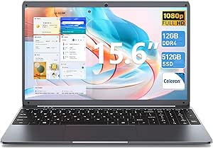 لابتوب ناكلود 15.6 انش 12GB DDR4 512GB SSD، شاشة FHD 1920X1080، معالج سيليرون N5095 رباعي النواة عالي الاداء، كمبيوتر لابتوب، واي فاي 2.4G/5G، بلوتوث 4.2، كاميرا ويب (رمادي)