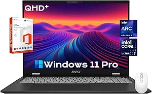 MSI لابتوب برستيج 16 ايه اي ايفو للاعمال بشاشة 16 انش QHD+ IPS، انتل 16 نواة الترا 7-155 H، بطاقة رسومات انتل ارك، 32GB LPDDR5، 1TB SSD، واي فاي 7، محرك ذكاء اصطناعي، ويندوز 11 برو وMS اوفيس ترخيص مدى