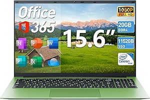 Naclud 15.6 Inch Laptops, Laptop Computers with N5095 Quad-Core(Up to 2.9GHz), 20GB RAM 128GB EMMC+1024GB SSD, Celeron, 11 Home, 7000mAh Battery, WiFi 6, USB 3.2 * 3, HDMI, Type-C, Portable(Green)