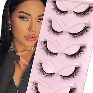 ميكنج تيك 5 ازواج من رموش فوكس اي ويسبي، رموش صناعية على شكل عين القطة مع تجعيدات سميكة ورموش متعددة الطبقات لإطالة الرموش ثلاثية الابعاد، عبوة رموش من المنك الصناعي، رموش صناعية