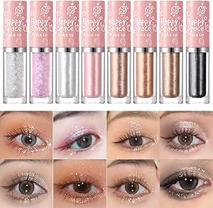 ميكنج تيك 8 قطع من مكياج ظلال العيون السائل اللامع عيون لامعة ميتاليك سريعة الجفاف عالية التصبغ صمغ لامع خفيف الوزن لابتكار كريستالي مليء بشعور الفتيات زهري
