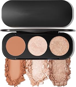 ميكنج تيك باليت بودرة خدود وهايلايتر 3 في 1، احمر خدود مات لم يتم اختباره على الحيوانات، هايلايتر لامع لاطلالة متوهجة