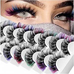 ميكنج تيك 7 ازواج من رموش المنك الملونة مع لون على الاطراف، مجموعات رموش ملونة منفوشة، رموش عين ثعلب القطة طويلة وسميكة ومجعدة بالكامل، مجموعة شرائط وصلات شعر ثلاثية الابعاد
