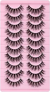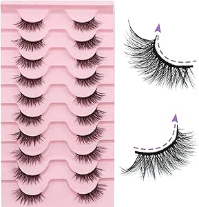 ميكنج تيك رموش صناعية نصف صناعية طبيعية مع شريط شفاف مصنوعة يدويا ناعمة على شكل عين القطة 10 ملم (10 ازواج)
