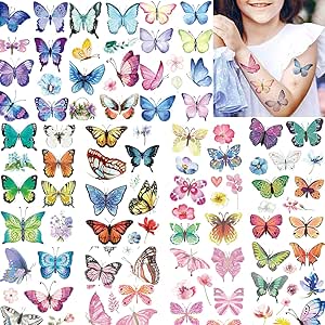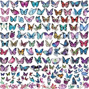 ميكنج تيك تاتو مؤقت على شكل فراشة، 150 نمط مختلف، ملصقات تاتو على شكل فراشة، تاتو ثلاثي الابعاد مقاوم للماء للاطفال والنساء لتزيين اعياد الميلاد وملصقات مكياج الجسم