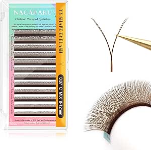 ناغاراكو وصلات رموش واي واي بلون بني 0.07 ملم بتجعيدة D 12 ملم مسبقة الصنع 4D ايزي فان مجموعة روسية كثيفة 12 صف من رموش ويسبيز متقاطعة مسبقة الصنع