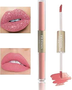Nexolla Dual-Ended Lip Color Gloss, Glitter Lip Gloss, Liquid Lipstick, Lip Gloss Volumizing Long Lasting Lip Tint, 01