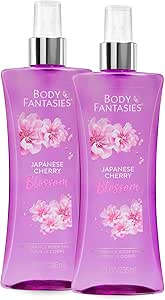 بودي فانتازياز بخاخ معطر للجسم برائحة زهرة الكرز اليابانية، 8 اونصة سائلة (عبوة من قطعتين)، للنساء