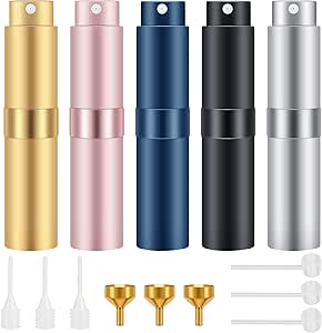 سايفينا زجاجات عطر قابلة لاعادة الملء بسعة 8 مل، زجاجة بخاخ عطر كولونيا صغيرة، عطر جيب فارغ للسفر والخروج (5 عبوات)