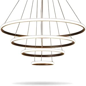 شمعدان مودرن بني / ابيض لغرفة المعيشة ، تركيب فني ، شمعدان الومنيوم ، ملحق اضاءة، لون الشاشة: هيكل بني، الحجم: 7 حلقات طول 105 × عرض 75 سم، لون ايمي