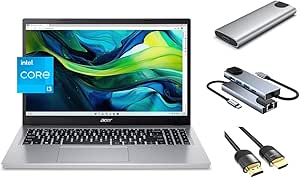 ايسر لابتوب اسباير جو رفيع 15.6 انش FHD ومعالج انتل i3-N305 ثماني النواة وRAM 8GB وذاكرة تخزين 1TB وSSD محمول 256GB وواي فاي 6 وكاميرا ويب وموزع USB وكيبل HDMI وويندوز 11