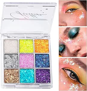باليت ظلال عيون من 9 الوان، مكياج ظلال عيون لامع لامع بالوان بينك وازرق وذهبي واخضر وبرتقالي لامع بالوان قوس قزح للنساء للمكياج اليومي والمسرحي
