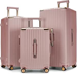 جينزا ترافيل شنطة سفر كبيرة بجوانب صلبة مقاس 30 انش، شنطة سفر بعجلات دوارة، شنطة خفيفة الوزن مع قفل تي اس ايه، فتحة مقسمة بنسبة 30%/70%، 20 انش.26 انش.30 انش (بينك)