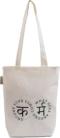 حقيبة حمل قماشية صديقة للبيئة مصنوعة من القطن 100% من غرين أوث مع إغلاق بسحاب وجيب داخلي, كارما, Pack of 1