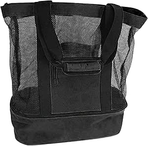 - ؟ طريقة التنظيف: حقيبة الشاطئ ذات الجزء السفلي البارد والحقائب الشبكية الكبيرة العلوية تحتوي على مبرد سفلي قابل للفصل مع مقبض خاص به. الجزء السفلي من هذه الحقيبة الشبكية هو حقيبة شاطئ مضادة للماء والرمال، وسيكون سهل التنظيف بعد الاستخدام وسهل التخزين.