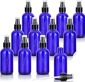 زجاجة بوسطن دائرية من الزجاج الازرق الكوبالت سعة 4 اونصة/ 120 مل مع مضخة معالجة سوداء (12 عبوة) I حاويات تخزين فارغة قابلة لاعادة الملء