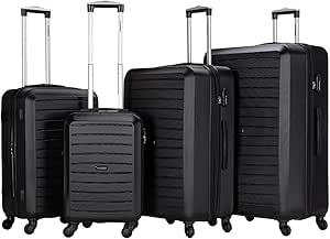 ستار جولد مجموعة شنط سفر بعجلات مكونة من 4 قطع امتعة مصنوعة قماش البوليستر مع نظام قابل للقفل – T88DB أسود
