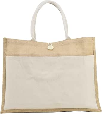 شنطة جوت صديقة للبيئة وقابلة لاعادة الاستخدام مع جيب من غيفتمات، شنطة جوت مع اغلاق قابلة للغسل، صديقة للبيئة شنطة حمل نسائية (قطعة واحدة، ابيض)