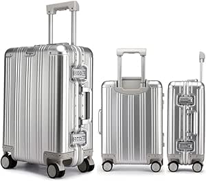 شنطة سفر بعجلات من خليط معدني من الالومنيوم والمغنيسيوم من ام ال دي دبليو ام اي، مقبض ارتداد مزمن، قفل بكلمة مرور جمركية TSA بسعة عالية لرحلات العمل/السفر، فضي، 24 انش