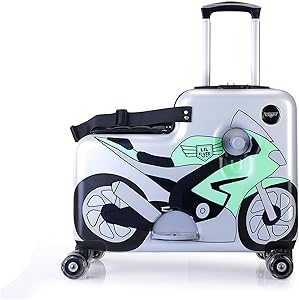 شنطة سفر للاطفال من يونغلينغز ليل فلاير مقاس 20 بوصة (دراجة نارية خضراء)، أكريلونيتريل بوتادين ستايرين (ABS)