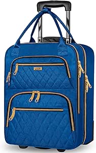 شنطة سفر محمولة تحت المقعد بعجلات دوارة من لاسوك، شنطة انيقة وخفيفة الوزن تحت المقعد، شنطة شخصية بمقابض تلسكوبية للرجال والنساء، للطيارين والطاقم بلون ازرق، مقاس واحد