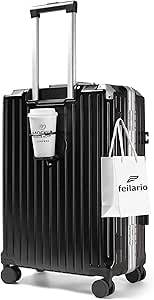 فيلاريو اطار الومنيوم 20 انش من البولي كربونات ABS بدون سحاب، عجلات دوارة بقفل تي اس ايه لحمل الامتعة مع حامل اكواب وخطاف، أسود