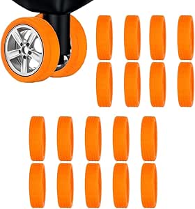 اغطية عجلات شنط الامتعة من السيليكون 16 قطعة واقية لعجلات وتقليل الضوضاء للنساء والرجال برتقالي بلاستيك