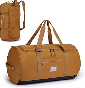 ال واي دبليو اي اي ام شنطة دفل للسفر للرجال بسعة 60 لتر متوسطة وخفيفة الوزن لصالة الالعاب الرياضية، شنطة ظهر دفل للسفر وعطلة نهاية الاسبوع مع جيب للحذاء، لون بني، البوليستر