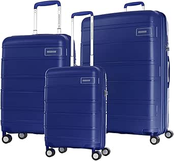 اميركان توريستر مجموعة شنط سفر بعجلات مزدوجة من ليتفلو، مقاس 55+68+82 سم، لون كحلي – 3 قطع، بولي بروبيلين (PP)
