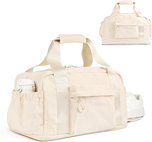 ايترونيك شنطة سفر قابلة للتوسيع للنساء، شنطة عطلة نهاية الاسبوع مع جيب للحذاء، شنطة دفل للسفر مع جيب مبلل، شنطة مقاومة للماء للحمل في صالة الالعاب الرياضية للنساء، بيج