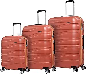 ايمينيت شنطة امتعة صلبة من البولي كربونات خفيفة الوزن من ماكرولون مع 4 عجلات دوارة مزدوجة هادئة بزاوية 360 درجة وقفل معتمد من ادارة امن المواصلات KJ95, احمر قرميدي, مجموعة حقائب السفر