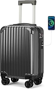 حقيبة سبيريت الشخصية 18 × 14 × 8 بجوانب صلبة مدمجة في قفل تي اس ايه ومنفذ يو اس بي، خفيفة الوزن بعجلات دوارة مزدوجة صامتة