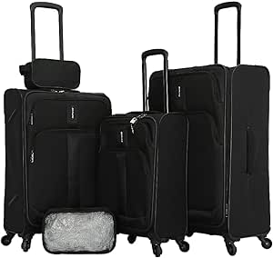 ترافيليتي طقم شنط ترولي 3 قطع + شنطة يد + اكسسوارات للجنسين L 28-M 24-S 20 اسود، بوليستر