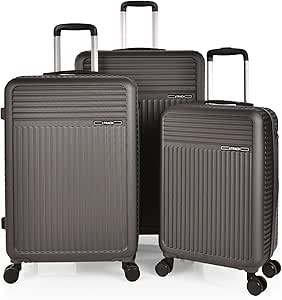 تراك مجموعة امتعة مصنوعة من مادة ABS الصلبة، شنطة سفر بعجلات بحجم المقصورة (ضمان لمدة عامين) مع وسادة رقبة من الميموري فوم AB2304/3P-D رمادي-ان بي