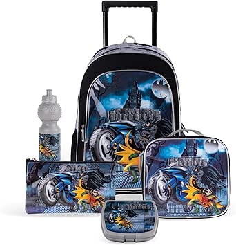 تتضمن مجموعة صناديق الترولي باتمان جوثام سيتي جارديانز 5 في 1 من وارنر بروذرز من تروكير عربة وحقيبة غداء وحافظة أقلام رصاص وصندوق غداء وزجاجة مياه. تحتوي حقيبة العجلات على حقيبة بمقبض قابل للسحب ألومنيوم قابل للتمديد بدرجتين تمديد وتحتوي أيضًا على أحزمة كتف مبطنة قابلة للتعديل. عجلات سيليكون قوية لسهولة التحريك والمشي. سحاب مزدوج لسهولة الفتح والإغلاق على كلا الجانبين. سحابات مطاطية ناعمة للفتح والإغلاق بشكلٍ مريح. جيب رئيسي يناسب كتب أو مجلدات بحجمٍ قياسي دون ثني الأطراف. يناسب الجيب الأمامي القبعات والقفازات وأقلام الرصاص وأقلام التحديد والوجبات الخفيفة أو الأغراض القيمة. تأتي حقيبة الطعام (لانش باج) معزولة حراريًا للحفاظ على طعامك ساخنًا أو باردًا في صندوق الطعام الخاص بك لساعات. كما أنها مقاومة للماء. سهلة التنظيف، فقط امسحها بقطعة قماش مبللة وستكون جيدة كأنها جديدة. قماش نايلون مقاوم للماء، مقاوم للتمزق والخدوش ومناسب للاستخدام طويل الأمد. تتميز هذه الحقيبة بأنها متينة ومصنوعة من مواد عالية الجودة. منتج مثالي للعودة إلى المدرسة لطفلك الصغير. المقاس: 18 بوصة. يأتي باللون الأزرق.