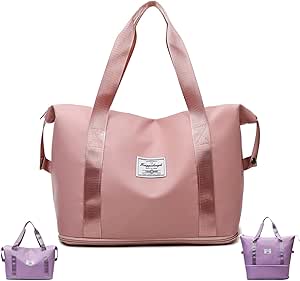 جيني شنطة سفر جي بي ام ساين قابلة للطي من جي بي ام ساين، شنطة سفر مزدوجة الطبقات ذات سعة عالية للفصل الرطب (زهري فاتح)