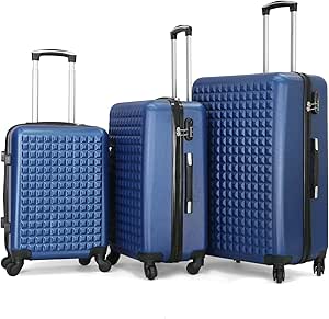 جيوردانو مجموعة شنط بعجلات دوارة من 3 قطع, أزرق, L-28 / M-24 / S-20، بولي كربونات (PC)