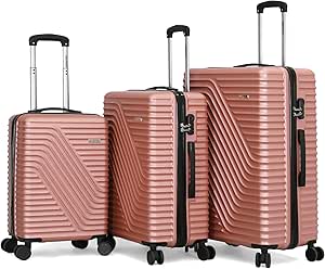 جيوردانو مجموعة شنط بعجلات صلبة مكونة من 3 قطع للجنسين مقاس L 28-M 24-S 20 لون روز، البولي كربونات