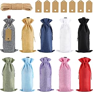 جي ال ان جي ثونج 10 اكياس هدايا من الكتان، اكياس زجاجات نبيذ احمر، اكياس هدايا من الخيش للكريسماس، اكياس نبيذ من الجوت قابلة لاعادة الاستخدام، اكياس هدايا زجاجات النبيذ مع حبل رباط للكريسماس واعياد