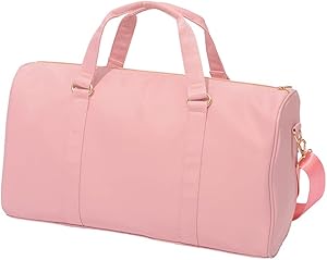 حقيبة السفر Kaymey من القماش الخشن حقيبة الكتف عطلة نهاية الأسبوع الرياضة الصالة الرياضية (وردي فاتح)، نايلون