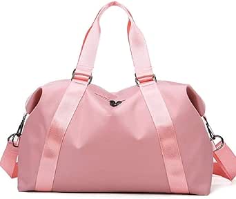 حقيبة سفر من القماش الخشن قابلة للطي، حقيبة حمل الأمتعة خفيفة الوزن للسفر للرياضة، الصالة الرياضية، عطلة (اللون: وردي)