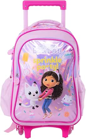 حقيبة مدرسية بعجلات مع مقلمة للبنات من غابيز دول هاوس، مقاس 41 سم، لون زهري، 143745, زهري, قياس واحد