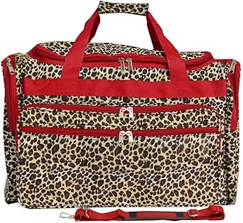 حقيبة من القماش الخشن بطباعة الحيوانات من وورلد ترافلر 48.26 سم بتصميم جلد الفهد الأحمر المطلي، بنقشة الحيوانات 48.26 سم حقيبة من القماش الخشن, أحمر تريم ليوبارد
