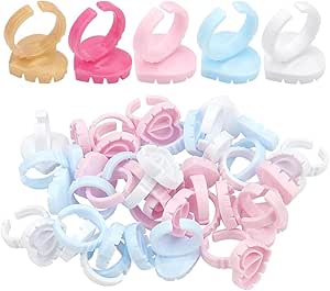 حلقات صمغ للرموش للاستعمال مرة واحدة من 100 قطعة من كيه ار سي اي كيو ام في، حلقات حامل صمغ مكياج بلاستيكية لمستلزمات وصلات الرموش (بينك)