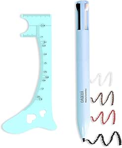داجيدا مجموعة استنسل حواجب وقلم مكياج، مجموعة استنسل حواجب متعددة الوظائف، مسطرة قياس حواجب من السيليكون قابلة لاعادة الاستخدام، مسطرة تحديد لتحديد المواقع للنساء مع قلم مكياج