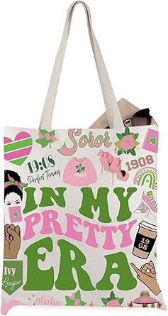 دبليو سي جي اكس كيه او حقيبة يد نسائية من القماش باللون الوردي والأخضر Paraphernalia 1908 Sorority Gift In My Pretty Era