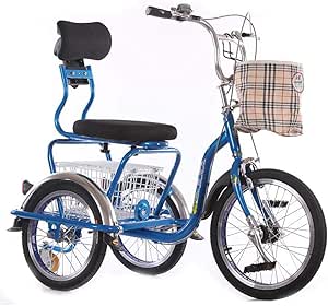 دراجة ثلاثية العجلات ثلاثية العجلات 3 عجلات دراجة دراجة ثلاثية العجلات مع عجلات كبيرة سلة كبيرة للتسوُّق الترفيهي والتمرين للرجال والنساء (اللون: أزرق)