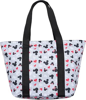 ديزني حقائب سفر مصنوعة من قماش البوليستر – مرخصة رسميًا. يطبع مع ميكي ماوس وميني ماوس والأصدقاء. إغلاق بسحاب علوي وجيب داخلي بسحاب وحمالات كتف مزدوجة. شنطة كبيرة توت بحجم مناسب للمتنزهات والشاطئ والسفر والتسوق والاستخدام اليومي. المقاسات التقريبية: 13 بوصة × 12 بوصة × 4 بوصة مع حزام متدلي 11 بوصة.